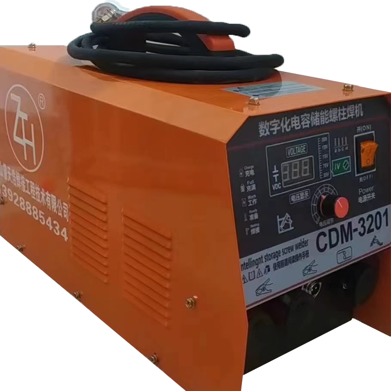 儲能式螺柱焊機可將螺柱、內(nèi)螺紋螺柱、銷釘?shù)阮愃频脑赣诮饘俟ぜ稀T诤附舆^程中,通過元件尖端放電使儲能電容放電,放電時間0.001-0.003秒,不需要氣體或陶瓷環(huán)保護(hù),熔深約0.1MM。